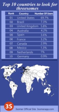 Individuals or couples seeking male or female participants to join them in a ménage à trois may well decide to plan a visit to one of the most sexually liberated cities in the U.S or visit one of the other countries appearing on 3somer’s report. Alternatively, a dating app targeted towards connecting individuals with like-minded men and women in their vicinity could very well be the answer.